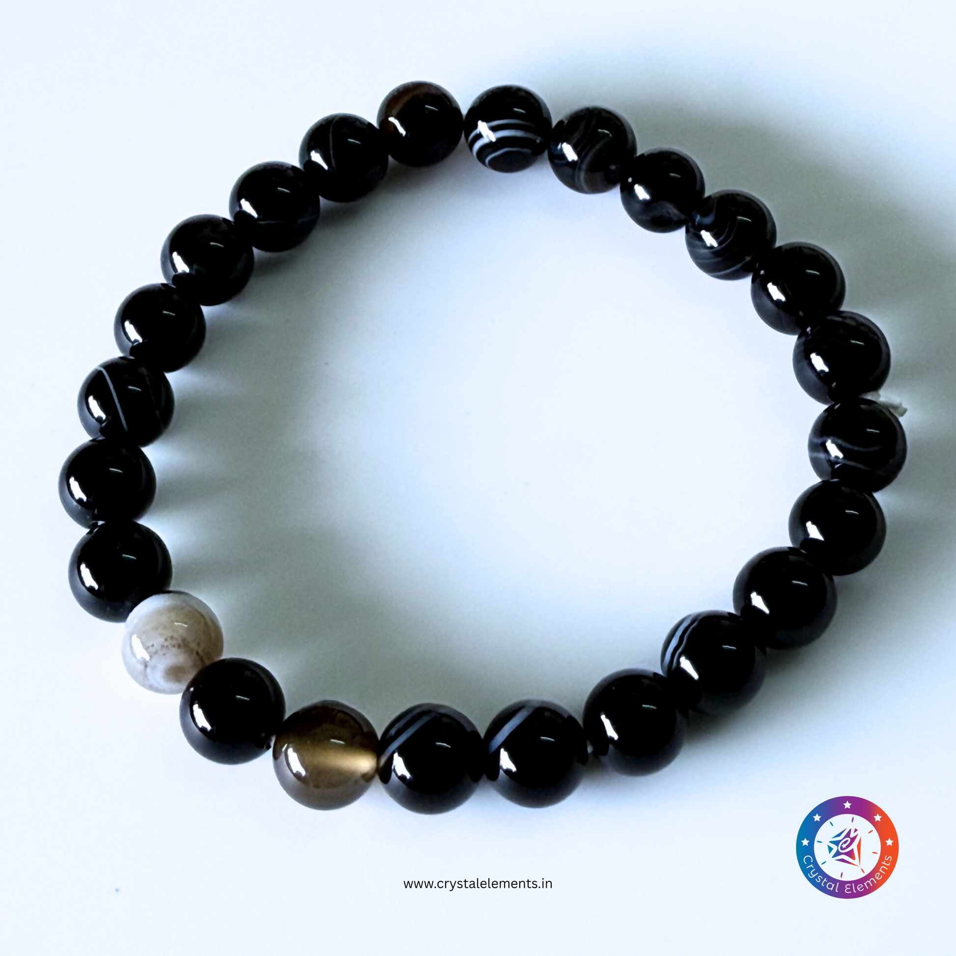 Step into your spiritual strength with the Sacred Ground & Spiritual Clarity Bracelet — handcrafted from Sulemani Haqiq, also known as Black Lace Agate. This ancient stone has been revered for centuries for its protective and balancing energies. Its flowing, smoky bands act like an energetic veil, shielding your aura while helping you stay rooted, focused, and spiritually awake. Ideal for seekers, meditators, and energy-sensitive souls, this bracelet harmonizes your mind, body, and spirit while offering deep emotional fortitude.