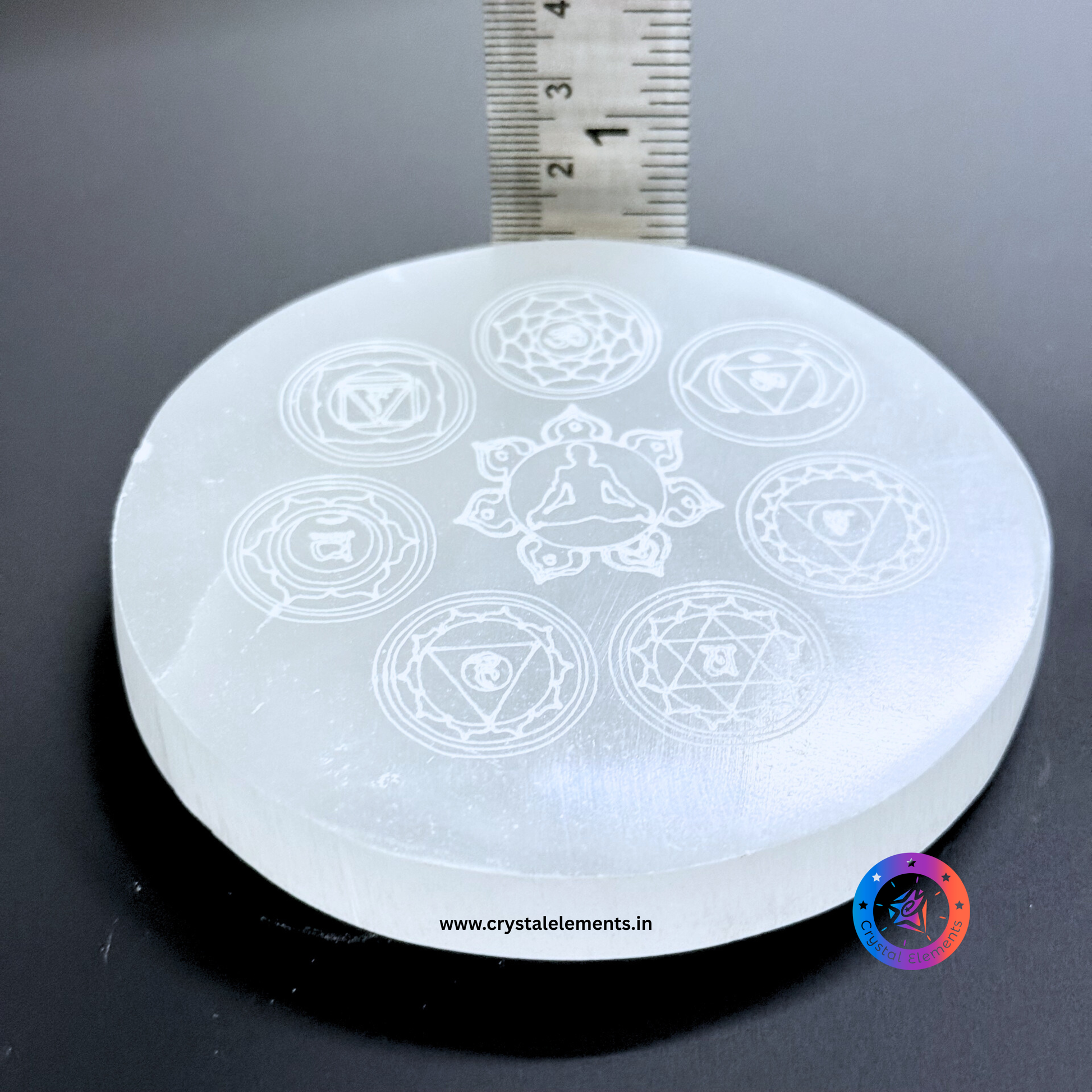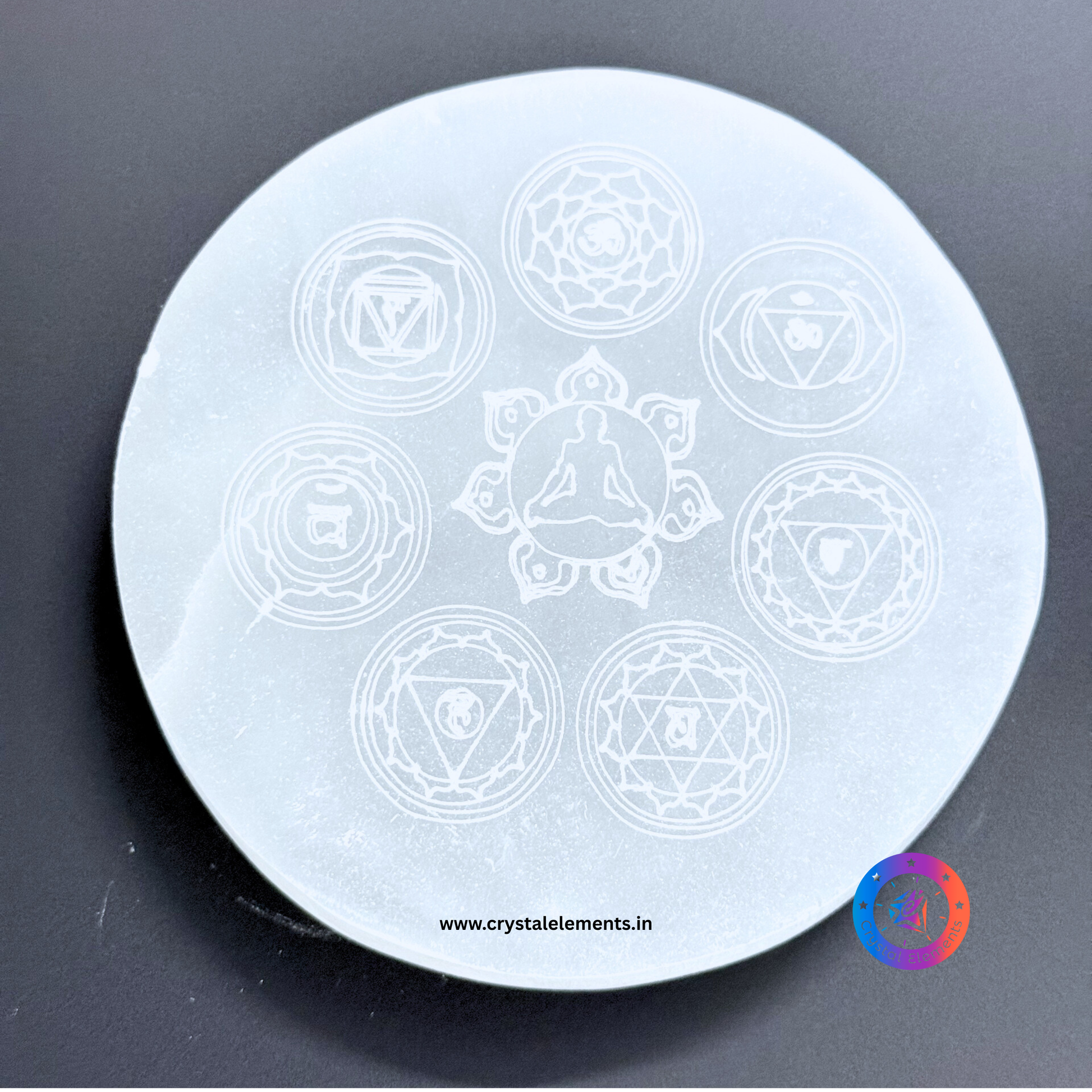 Selenite Coaster with 7 Chakra Symbols Engraved - Align & Elevate