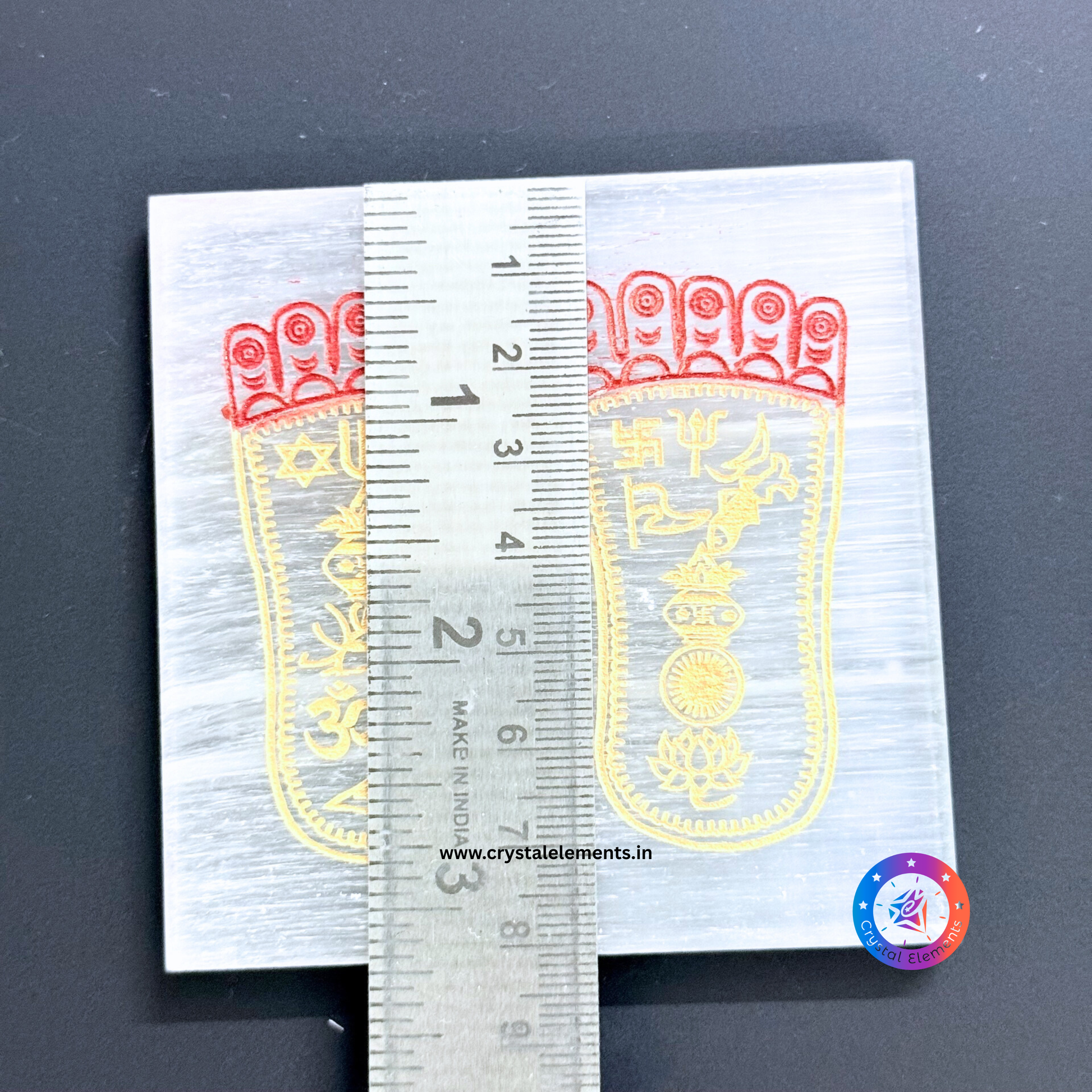 Selenite Coaster with Laxmi Charan Engraving - Divine Grace
